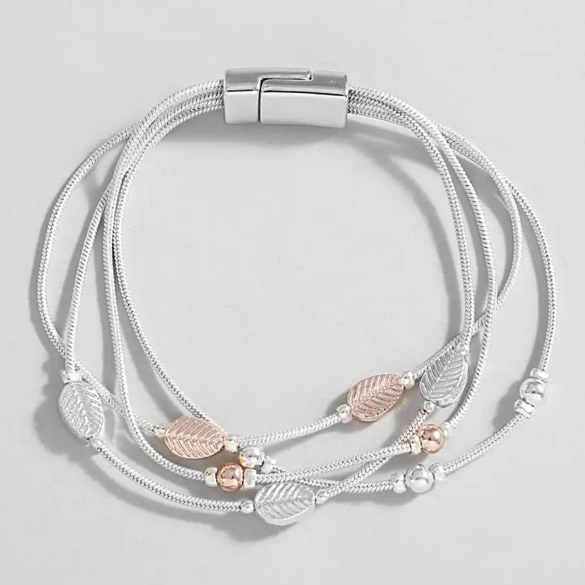 Multi Leaf String Bracelet - Rose Gold & Silver